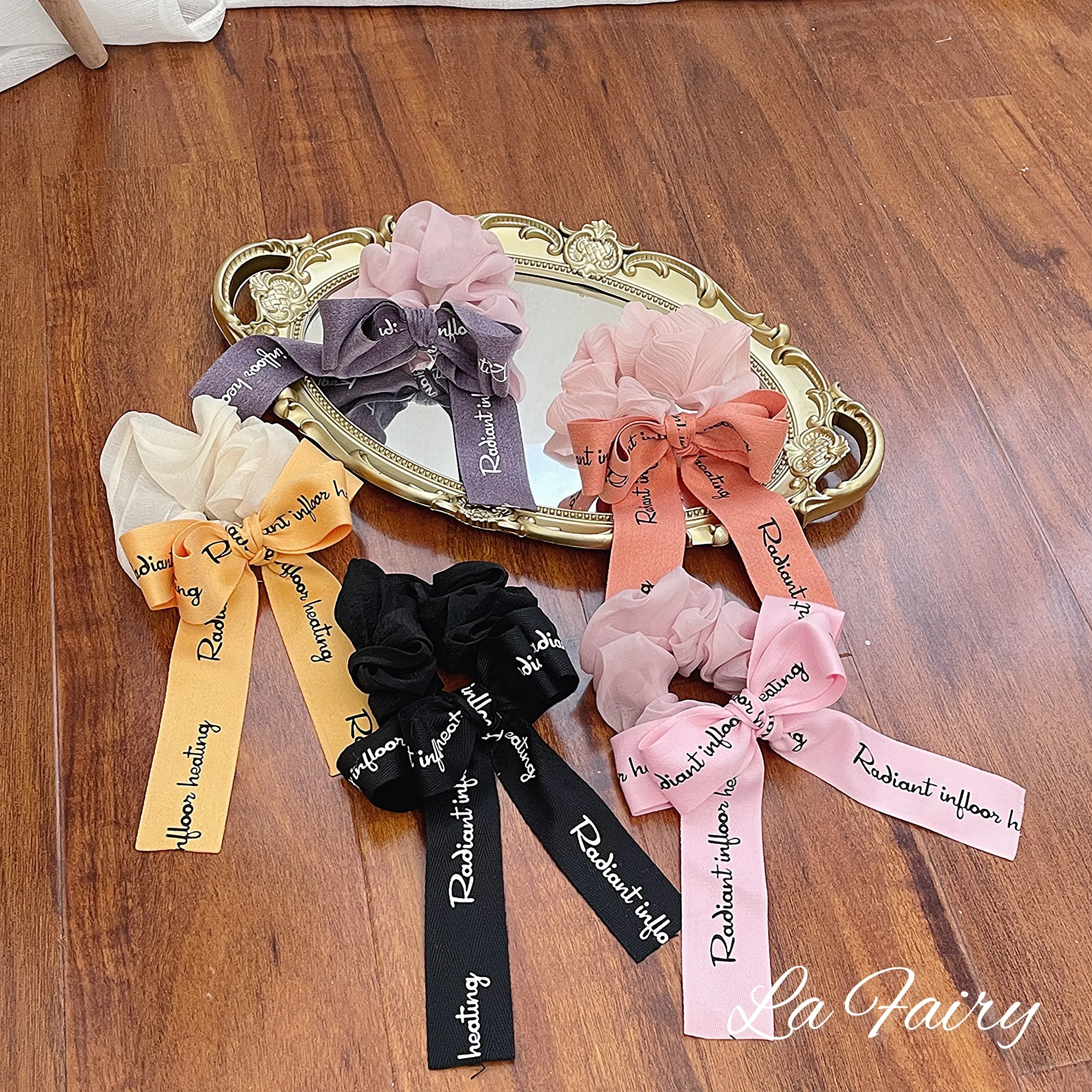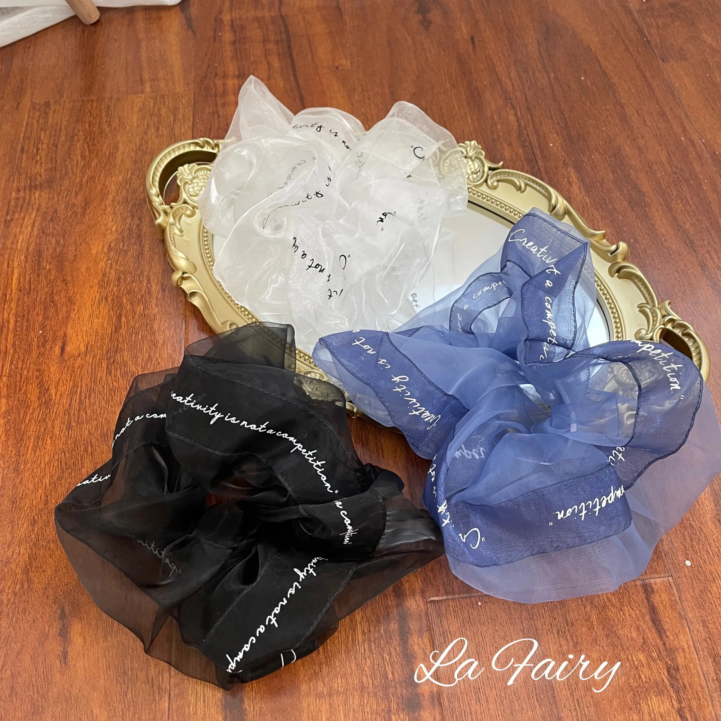 獨家設計款-限量韓國手工精緻英文字撞色緞帶雪紡紗大腸髮圈-韓國製