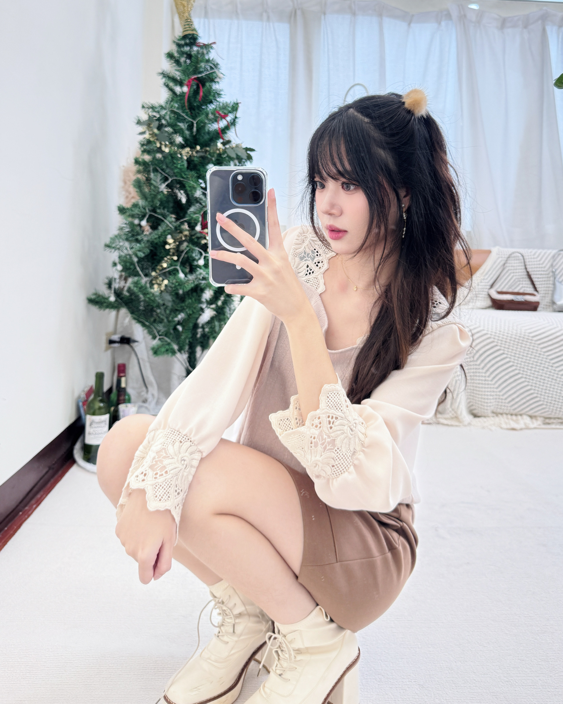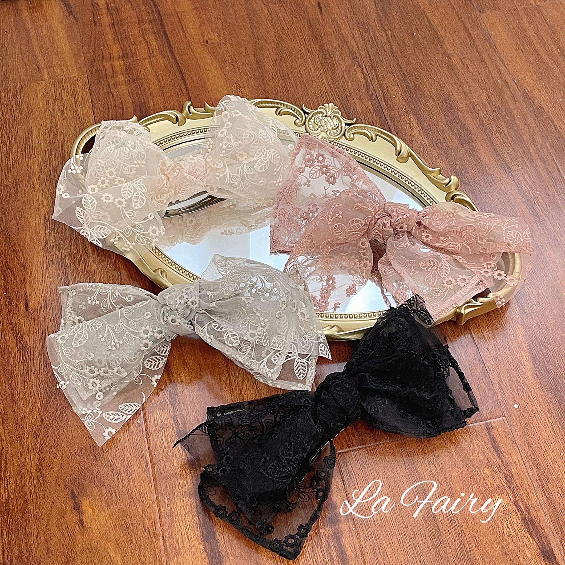 限量韓國手工製做具有存在感的精緻蕾絲兩層蝴蝶結髮夾