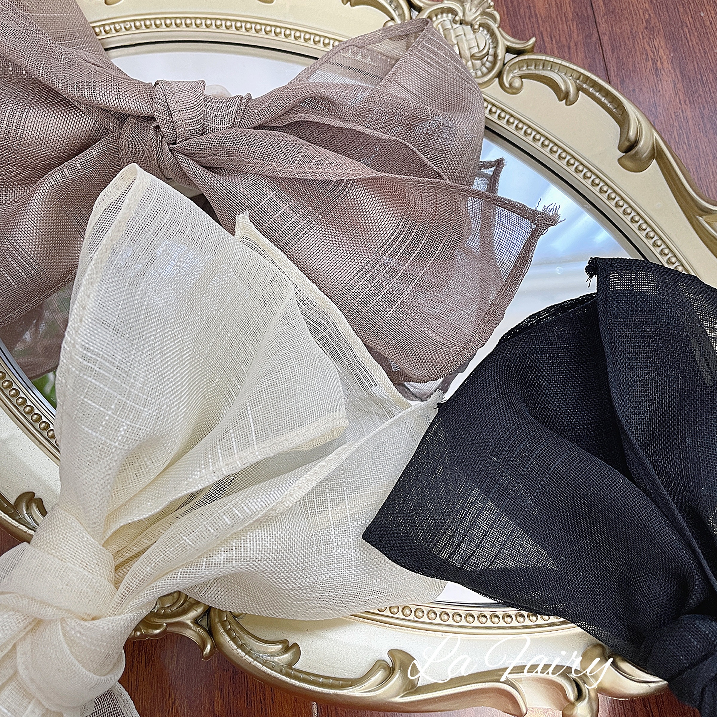 限量韓國手工製做具有存在感的麻製感壓紋三層蝴蝶結髮夾