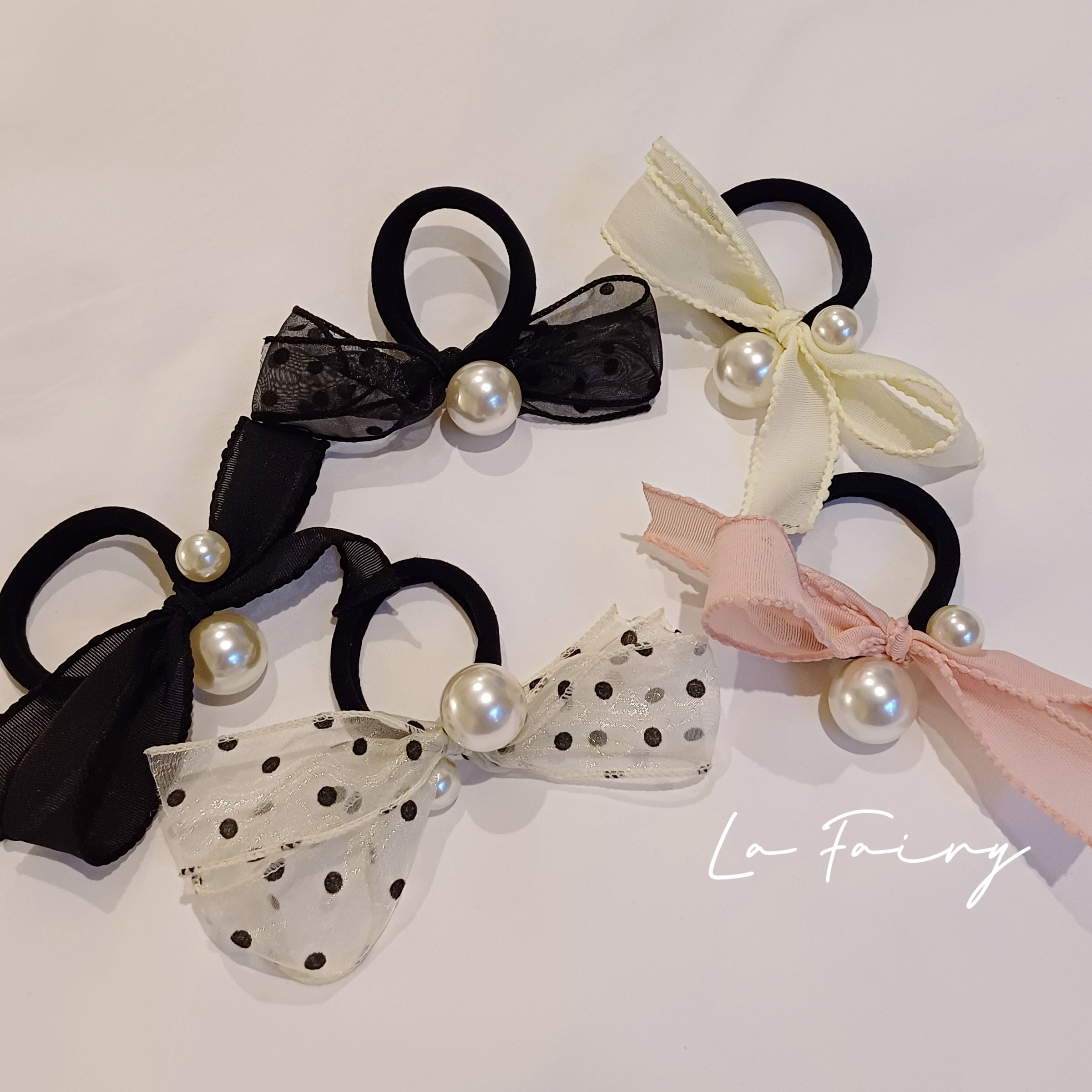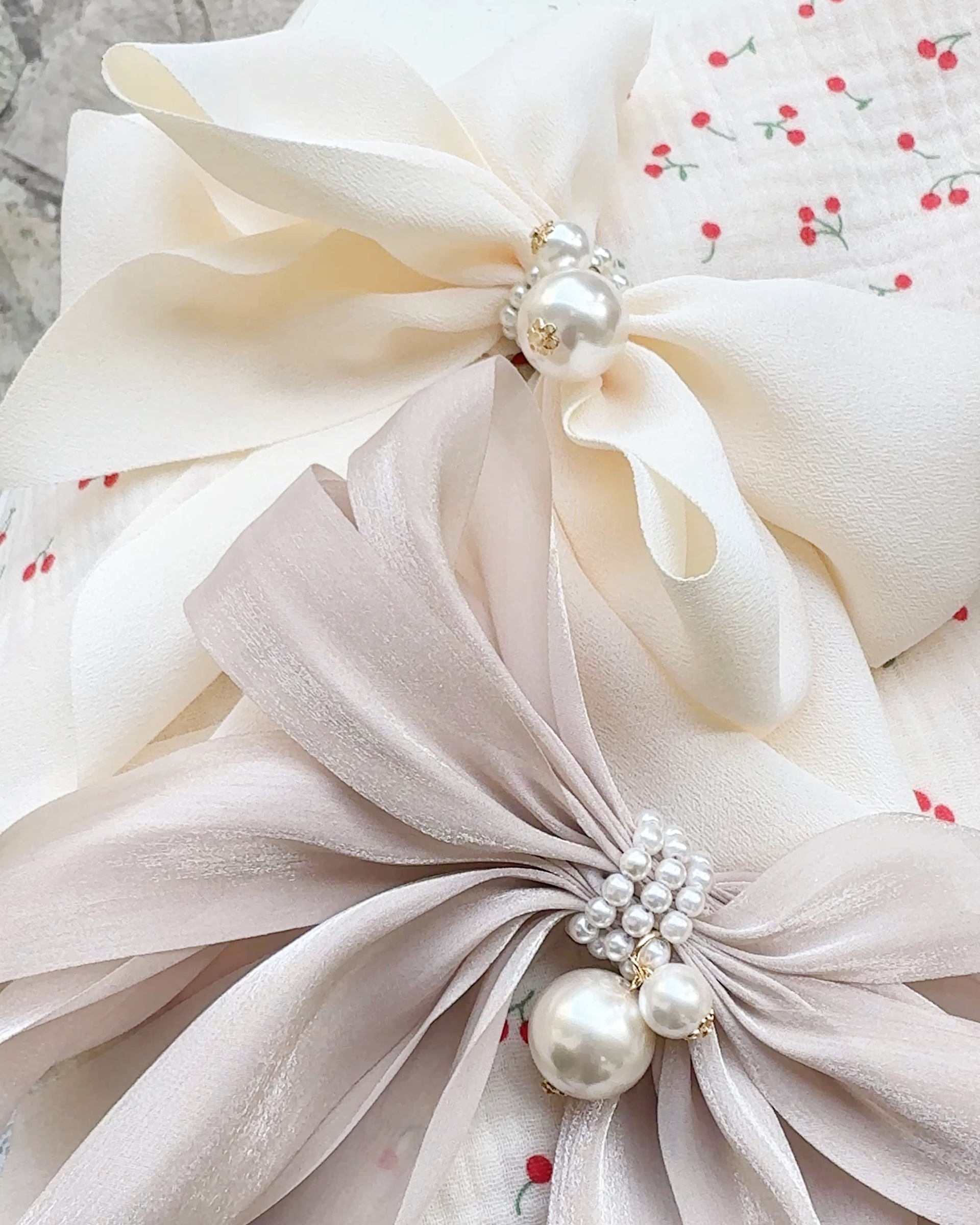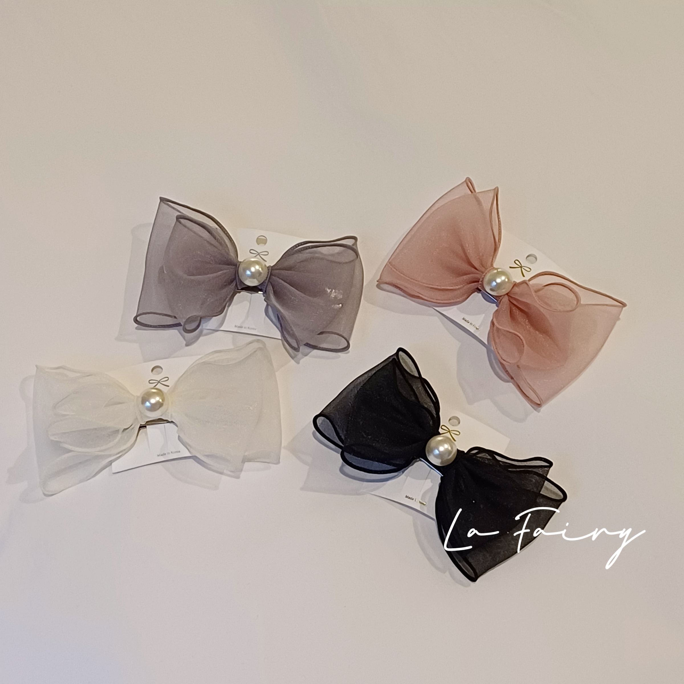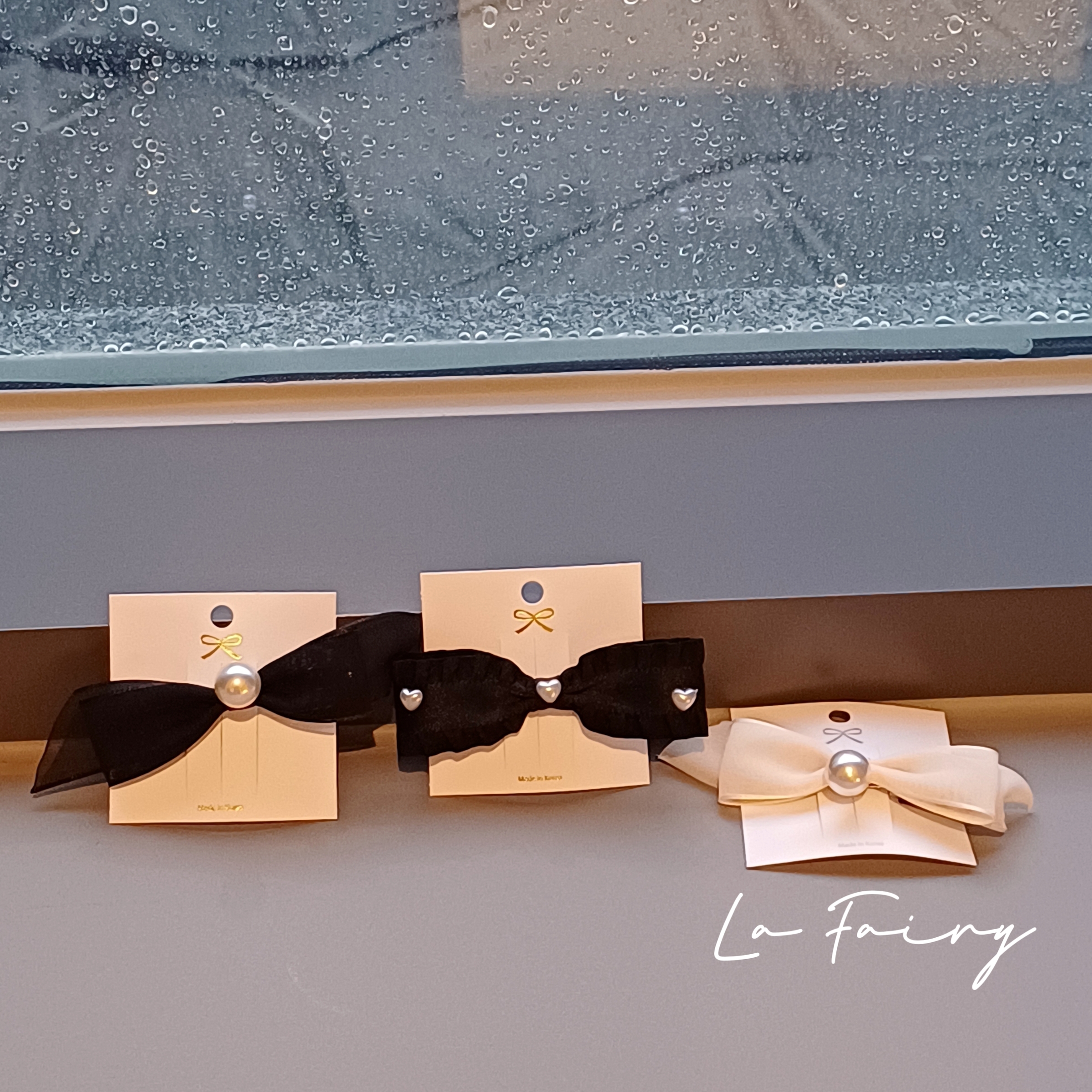 韓國光澤珍珠具份量感緞帶蝴蝶結髮飾髮夾|現貨|-La Fairy#正韓#韓國製