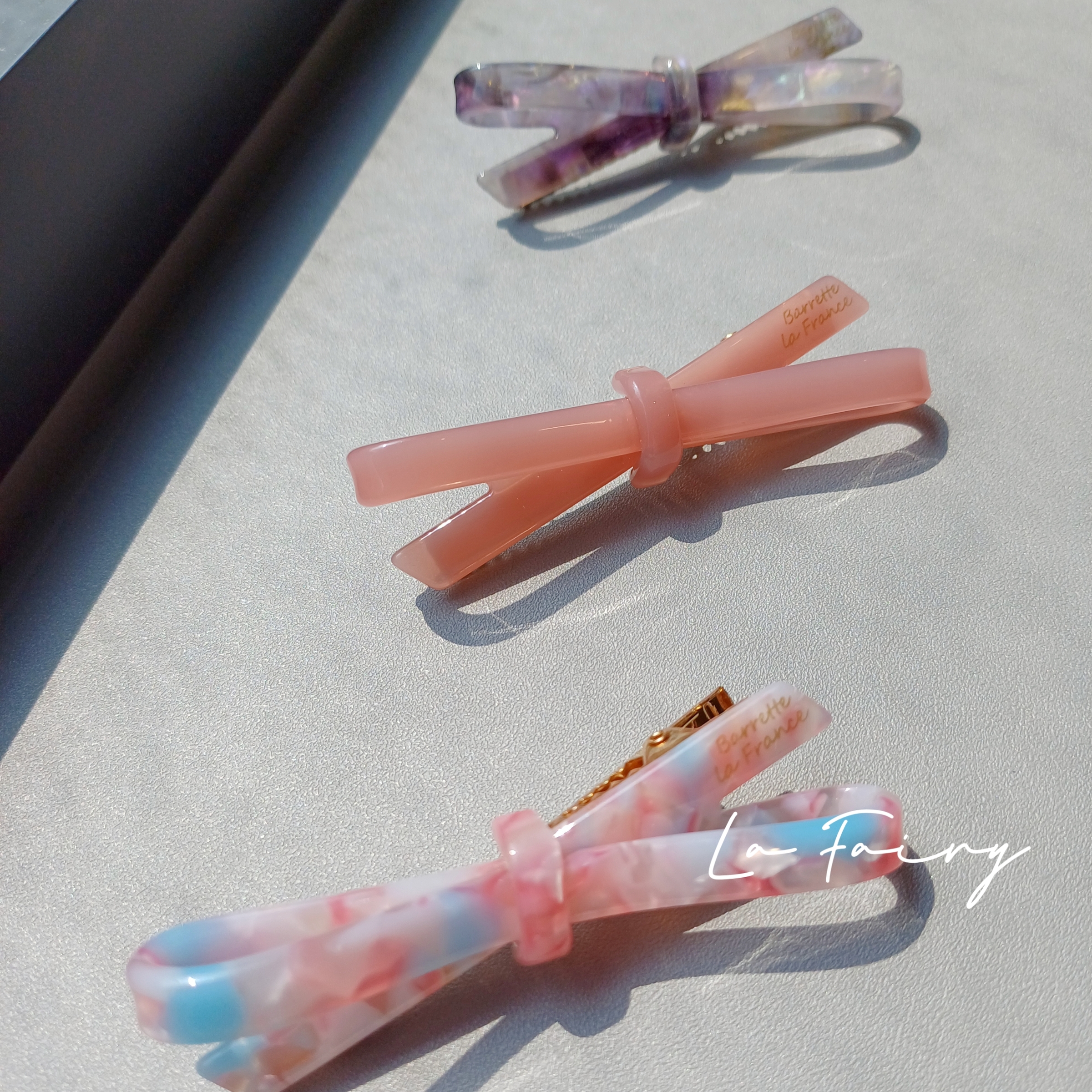 韓國手工髮飾-立體不規則飄帶感暈染蝴蝶結醋酸髮夾抓夾