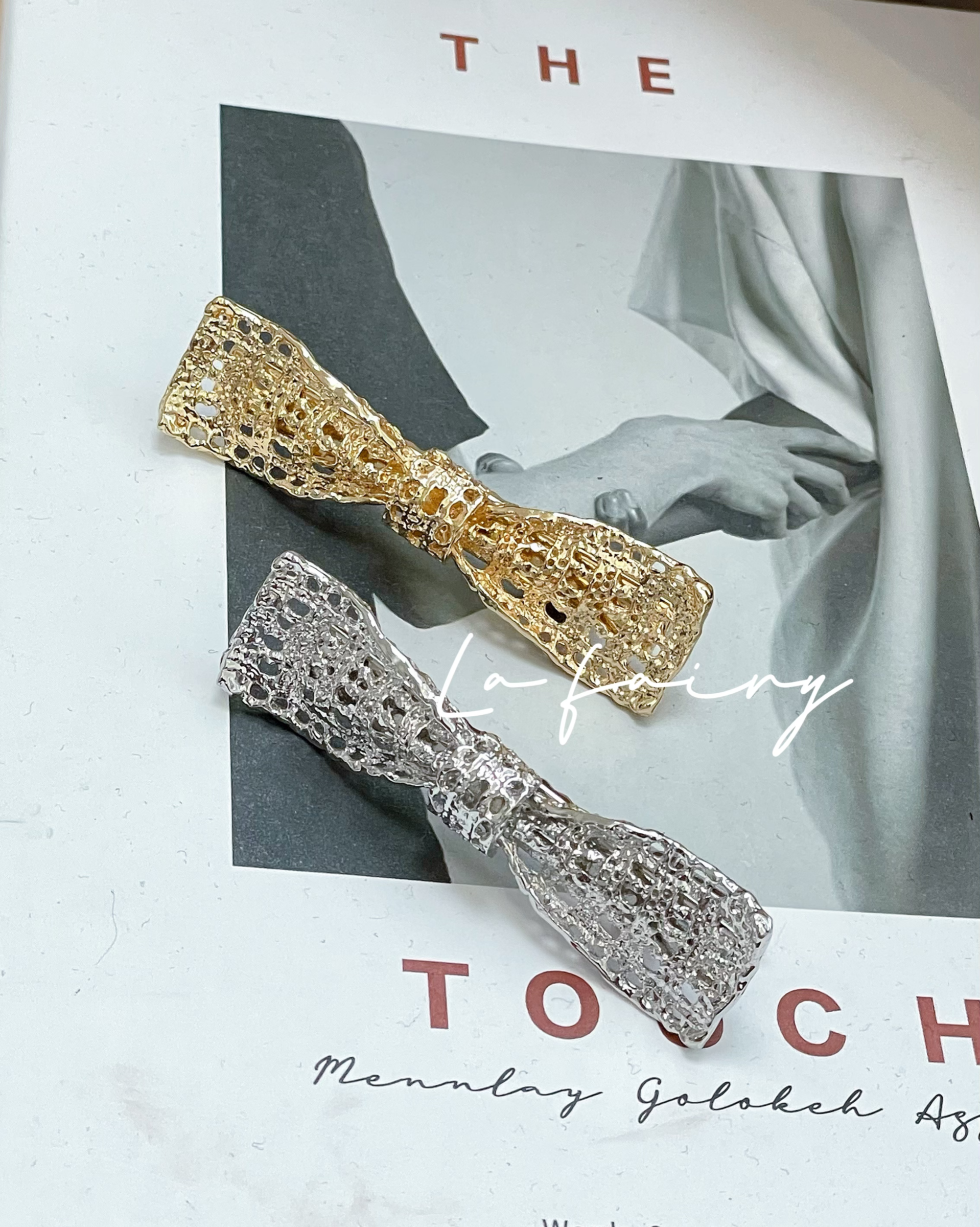 |現貨|韓國手工髮飾-巴洛克精緻摟空蝴蝶結金色壓紋髮夾邊夾壓夾-La Fairy#正韓#韓國製